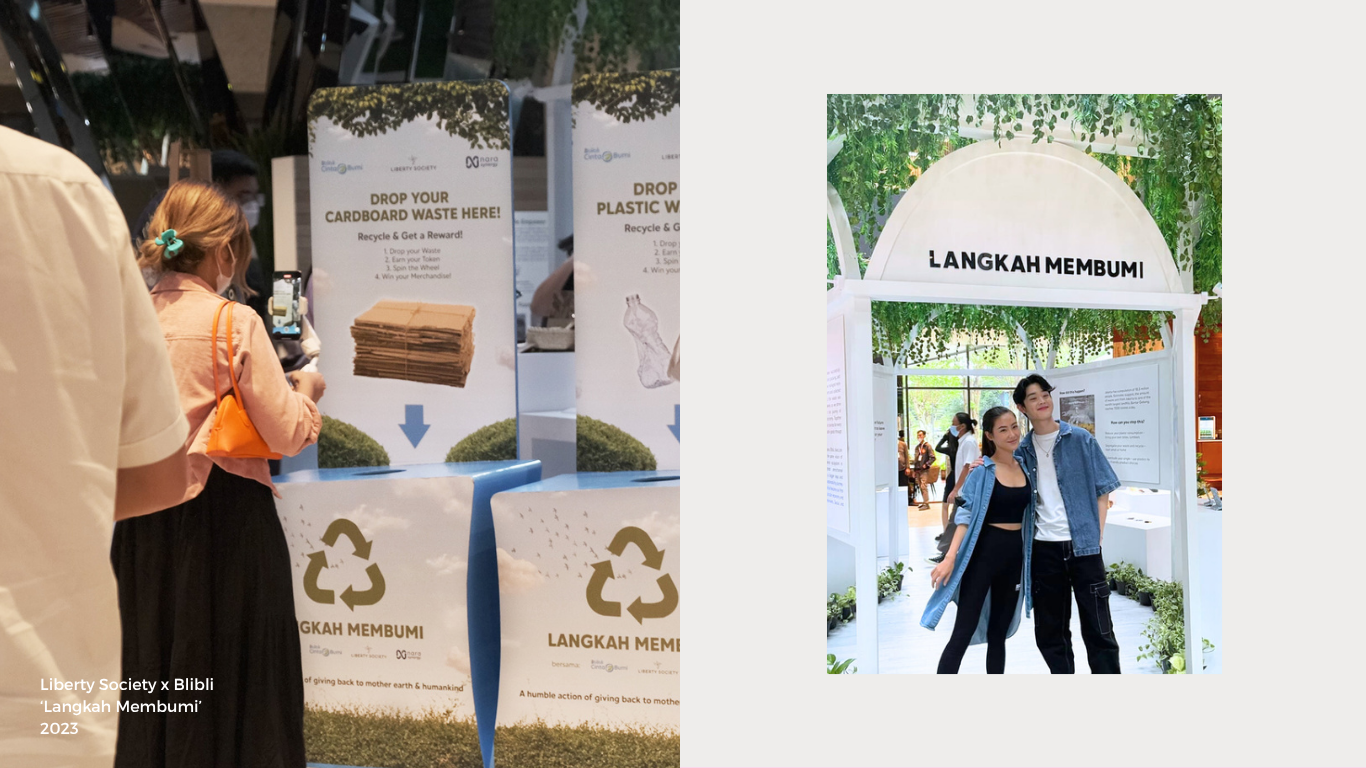 A sustainability-focused services by Liberty Society and Lindungi Hutan that help brands/companies create impactful experiences, from event planning, waste management, to impact reporting.