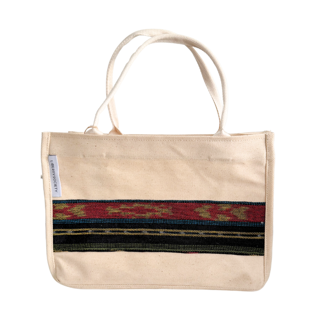 Made of durable cotton canvas, combined with the traditional tenun. Customizable with your brand's logo.